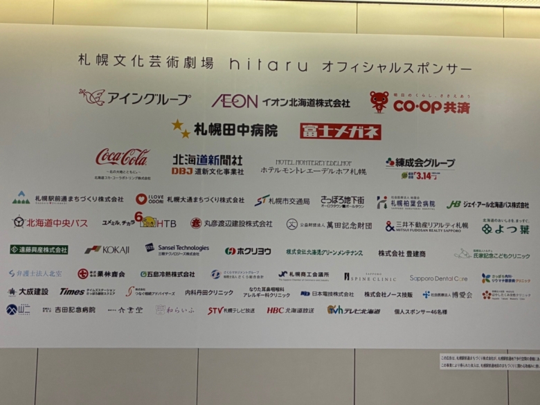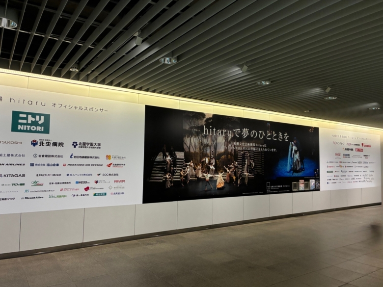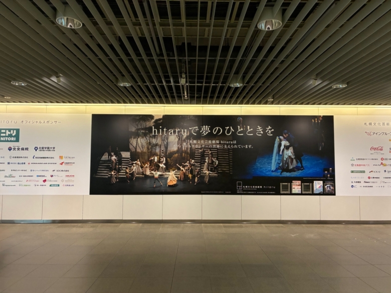 この度、弊社がオフィシャルスポンサーとして協賛しております札幌文化芸術劇場様より大型壁面広告として札幌駅前地下歩行空間に弊社名が掲載されましたので報告申し上げます。札幌文化芸術劇場様は札幌における舞台芸術の振興と質の向上、市民の皆様へ質の高い芸術鑑賞を提供されている団体様です。